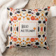 Dieses Kissen aus der Wohngestaltung weist ein niedliches Kürbismuster auf, mit Herbstblättern in weißer Hintergrundfarbe, die Sie individuell gestalten können.