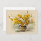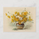 Carte postale inspirée d'une aquarelle de l'artiste floral Paul de Longpré, appelée Daisies et Bachelor's boutons. L'image montre un vase décoratif rond débordant de jolies fleurs jaunes et blanches. Utilisez pour les anniversaires et autres célébrations, ou quand vous voulez répandre un peu de soleil! :)