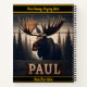 Ein bezaubernder Elch steht hoch unter den mächtigen Bäumen, die Kraft und Gnade ausstrahlen, mit einem warmen Glühen, das seine majestätischen Antlers erhellt. HINWEIS zum Ändern von Text- oder Grenzfarben mithilfe des Entwurfstools Bearbeiten