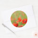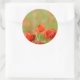 L'autocollant rond du pavot rouge vibrant fleurit dans un domaine vert complètement des pavots. Il a une émotion forte de hapiness, de ressort et d'été.
