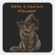 Paw-irgendein Halloween-Schwarzkatzenhut Quadratischer Aufkleber