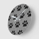 Paw Print Patterns Black Silvery Grey Glitter Cute Runde Wanduhr