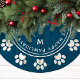 Paw Print Wreath Monogram Pet Navy Weihnachten Brushed Polyester Tree Skirt. Der perfekte Baumrock für Haustierbesitzer, die Liebe haben, ihre Haustiere in die Feiertage einzubeziehen. Personalisieren Sie dieses benutzerdefinierte Design mit Ihrem eigenen Text und Monogramm Initial.