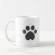 Die Pfoten der Katze drucken niedliche Kaffee-Tasse.