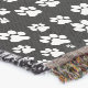 Druckmuster NS 01b Dieses Bild ist ein nahtloses Muster aus weißen und rosa Pfoten auf schwarzem Hintergrund. Die Pfotendrucke sind nach dem Zufallsprinzip angeordnet, wobei einige der rosa Pfotendrucke Herz bilden. Der Gesamteffekt ist spielerisch und macht Spaß, und es wäre perfekt für Liebhaber von Haustieren. Der Hintergrund ist transparent, was den Pfotendruck deutlich macht.