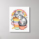 Genießen Sie den Charme der "Pastel Paws & Rainbow Sips", ein reizvolles Design mit einem zauberhaften, grauen Kätzchen, eingebettet in einen Stapel farbenfroher Tasse, alles Set gegen einen weichen pastellfarbenen Regenbogen. Diese skurrile Abbildung erfasst das Wesen der kawaii Kultur, die beruhigende Pastelltöne mit spielerischen Elementen wie dem Lächeln von Sternen und dem Bummeln von Bienen kombiniert.