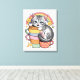 Genießen Sie den Charme der "Pastel Paws & Rainbow Sips", ein reizvolles Design mit einem zauberhaften, grauen Kätzchen, eingebettet in einen Stapel farbenfroher Tasse, alles Set gegen einen weichen pastellfarbenen Regenbogen. Diese skurrile Abbildung erfasst das Wesen der kawaii Kultur, die beruhigende Pastelltöne mit spielerischen Elementen wie dem Lächeln von Sternen und dem Bummeln von Bienen kombiniert.