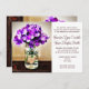 Ces mariages campagnards rustiques sont accompagnés d'un pot de maçon aux fleurs d'hydrangée violette posé sur un banc en bois rustique. Le bocal de mason a un coeur en bois sur le devant. Le même design de bocal de mason et de fleurs d'hydrangée est également sur le dos du faire-part mariage en couleur. Ajoutez simplement votre libellé faire-part de mariage aux champs modèles. Utilisez le bouton "Customiser" si vous avez besoin de déplacer des choses ou de changer le style de police ou la couleur de police.