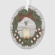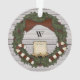 Campagne primitive Agritourisme Holly Monogram Wreath Ceramic Ornament - Une simple ferme style campagne de Noël couronne tout décoré pour les vacances. La couronne est ornée d'un arc bordeaux, de baies de pipe, de bougies arrachées, d'étoiles de moutarde et de sucres de canne. Ce qui fait de cet ornement unique à vous est qu'il comporte votre initiale. L'ornement ferait un beau cadeau réfléchi. Vous pouvez facilement personnaliser votre ornement en utilisant l'outil de design génial de Zazzle. L'ornement fait partie d'une collection.