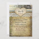 Bois déchiqueté, vieux papier, dentelle d'ivoire Dîner de campagne rustique invitation avec coeur d'amour et les initiales de marié et marié.