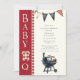 Accueillir un baby shower en couple mémorable avec cette délicieuse invitation thématique "Baby Q". Doté d'un motif en vichy rouge et blanc éclatant, ce design saisit l'essence d'une fête de jardin barbecue. L'illustration centrale comprend un barbecue de style vintage, prêt à démarrer, ainsi qu'un doux rompeur de bébé dans le même imprimé en vichy classique. C'est un moyen charmant et unique d'annoncer votre célébration et les invitations qui ont aimé partager dans la joie. Parfait pour une réunion détendue et amusante, cette invitation assure à vos invités un accueil et un enthousiasme pour l'événement.
