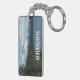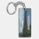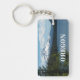 Porte - clé rectangulaire, acrylique, à double face qui présente une image pittoresque, paysage photographique de la neige enroulée du mont Hood et un lac paisible dans une forêt dans le grand état du Pacifique Nord-Ouest de l'Oregon. Un souvenir de voyage exceptionnel !