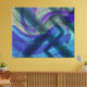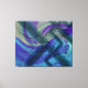 Paysage industriel Horloge murale abstraite tuyaux abstraits, aurores boréales, ou arc-en-ciel et vagues de bleu, violet et vert sur toute cette toile.