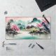 Paysage printanier avec cottage et montagnes, style peinture à l'encre chinoise