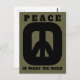 Postcard Militär grün mit schwarzem Friedenszeichen und "FRIEDEN IST, WAS WIR BRAUCHEN" und Y-NOT-ME. Langfristig sind Fairness und Gleichheit das, was Frieden bringt. Es scheint, je mehr Milliardäre es gibt, desto weniger Gleichheit gibt es. Ist das nur ein Zufall?