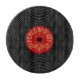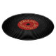 Gold Frieden und Freude Stricktext-Design mit Kieferndekor-Blätter und Konen-Dekoration auf einer Vinyl-Platte. Dieses Design ist für jeden, der Retro-Stil Designs und Musik mag. Großartige Weihnachtsdekoration und Geschenkidee. Es ist einfach, es anzupassen, indem man Namen/Datum/Text usw. ändert.