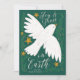Eine illustrierte Taube auf der Hand schwimmt über diese bezaubernde Weihnachtskarte, die eine Botschaft von Freude und Weltfrieden verbreitet.
