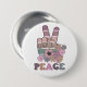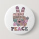 Peace Hand Sign Retro 70er Floral Daisy Button
