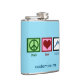 Ein Friedenszeichen, ein Herz und ein hübscher Delphin auf einer blauen personalisierten Flasche. Ich Liebe Meerestiere im Ozean.