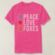 Dieses Design zeigt eine niedliche und skurrile Abbildung eines Fuchses, umgeben von Symbolen der Ruhe und Liebe. Ideal für Fuchsliebhaber und Naturliebhaber, die eine Touch in ihrem Kleiderschrank schätzen.
