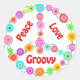 Viel Spaß mit diesem Retro-Design mit einem Friedenszeichen aus Blume und den Worten - Peace Liebe Groovy. Bringen Sie den 60er und den 70er zurück.