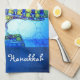 Peace Liebe Hanukkah Script Blue Green Menorah Geschirrtuch
