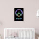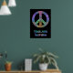 Vintager Stil psychedelisches Friedenszeichen Poster mit "Peace Liebe Happiness" in einem klassischen 60er Schriftart.