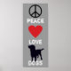 Diese individuell gestaltbare Peace Liebe Hunde-Produktgestaltung mit einem Friedensschild, einer Silhouette für Herz und Hund ist ein einzigartiges Geschenk für Hundebesitzer und Liebhaber. Anpassen oder Anpassen des Designs Kaufen Sie dieses Element, oder passen Sie den Text mit einem anderen Schriftart, einer anderen Farbe oder einer anderen Größe an, oder fügen Sie ein Bild hinzu. Design ©2011 Gratzer Graphics LLC.