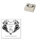 Elegante Weihnachtsgummi-Briefmarke mit einem Blumenkranz um die Worte "Friede, Liebe, Freude". Personalisiert mit Ihrem Familiennamen ist diese festliche Briefmarke ideal für die Dekoration von Urlaubskarten, Umschlägen, Geschenketiketten oder Packages. Ein zeitloses Schwarz-Weiß-Design, das Ihren Weihnachtsbriefen und Weihnachtsläden eine stilvolle, wiederverwendbare und Öko-freundliche Touch verleiht.