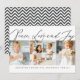 Design an der Vorderseite besteht aus spielerischer, kursiver Typografie von "Peace Liebe & Joy". Fügen Sie ein benutzerdefiniertes Foto Ihrer Familie hinzu und fügen Sie Familiennamen hinzu. Dieses Design ist modern, elegant, spielerisch und lustig.