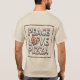 Dieser T - Shirt hat ein zeitgenössisches Pizzabild mit den Worten PEACE LIEBE und PIZZA in den Farben Weiß, Blau, Gelb, Orange, Rot und Schwarz. Das O in LIEBE ist ein herzförmiges Pizzabild mit Pepperoni-Scheiben und Käse. Das Bild ist ein Bild im Stil typografischer Kunst. Der T - Shirt ist ein männlicher T - Shirt in einer Sand-Farbe.