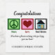 Niedlich Peace Liebe Real Anwesen Weinetiketten für einen Händler, der eine Zuhause verkauft hat. Passen Sie dieses Label mit Ihrem Namen als Immobilienagentur unter dem Friedenszeichen, einem Herz und einem Haus an. Herzlichen Glückwunsch an Ihren Kunden und personalisieren Sie eine Danksagung Nachricht.
