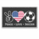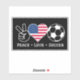 Dieser Vinyl Aufkleber eignet sich hervorragend für einen US-Fußballfan. Das Design besteht aus einem Schild mit der Stille, einer amerikanischen Fahne in Herzform und einem Fußball mit den Worten "Peace Liebe Soccer".