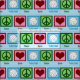 Niedliches, blaues Volleyballgewebe mit einem Schild, Herz und einem Ball für Ihren Lieblingssport. Peace Liebe Volleyball Stoff für ein Team oder Trainer.