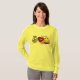 This Peace, Love & Happiness T-Shirt features playful peace, heart, and smiley icons centered on the chest. The green script name detail in the upper-right adds a personal signature touch while keeping the design light and balanced.