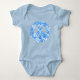Ein in Blau und Weiß gehaltenes Schild für den Frieden. Das Design ist für weiße Kleidung nicht zu empfehlen, da die weißen Blütenblätter verloren gehen.