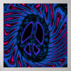 Verzerrtes Friedenssymbol Poster in rot, blau und lila.