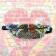 Graffiti mit Friedenszeichen. Die Futter Farbe hier lila, ist anpassbar. Fanny Pack.