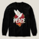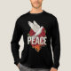 A bold back print T-shirt design featuring a white peace dove flying over red roses with large PEACE typography and a subtle flame texture at the bottom. Perfect for modern streetwear, this high-resolution transparent design is ideal for oversized tees and premium fashion brands.