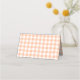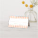 Pfirsichfarben auf Vorder- und Rückseite der nahtlosen Gingham-Mustergrafik anpassen, um sie an Ihre Hochzeitspalette anzupassen. Sie können auch die Randfarbe und die Linien auf dem Etikett auf der Vorderseite dieser Platzkarten ändern. Es wird ein moderner Schriftart verwendet, aber die Farbe und der Stil können ebenfalls angepasst werden. Leichte pachelorange und weiße rustikale Gingham Platzkarten für eine Hochzeit in der Scheune.