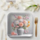 Dahlia-Bouquet in grauer Vase auf einem Marmorregal