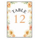 Peach Aquarell Blume und Blätter Hochzeit Tischnummer