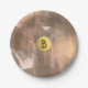 Peach & Copper Bronze Chic Modernes Monogramm Gold Pappteller