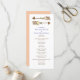 Dieses hübsche Hochzeitsprogramm besteht aus zwei skurrilen, braunen Pfeilen, die mit gelben und pfirsichfarbenen Blume geschmückt sind. Unterhalb der Pfeil-Designs ist Ihr eigener Text in blau und braun. Der untere Teil ist ein großes Feld, sodass Sie hinzufügen oder abziehen können, wenn Sie möchten. Wenn Sie den Schriftart, die Farbe, die Schriftgröße oder die Textposition ändern möchten, wählen Sie Anpassen. Schauen Sie sich die passenden Einladungen und andere Hochzeitsartikel in unserem Shop an.