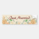 Mit einem pfirsichblühenden Design mit "Just Married" in bordeauxroten, kursiven Buchstaben. Dieser schöne Autoaufkleber wird gut auf deinem Wagen aussehen. Feiern Sie, dass Sie heute ein Neuvermählter sind! Kunstwerk erstellt von: AMBillustrations http://www.etsy.com/shop/AMBillustrations