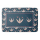 Diese Badematte hat einen Rand von pfirsichfarbenen Blumen, mit roten Herzen. In der Mitte des Designs gibt es ein massives marineblaues blaues Rechteck mit einem dünnen doppelten Rand, bestehend aus weiß und pfirsichfarben. Auf dem Rechteck der Marine befinden sich drei größere Versionen des Blumendesigns. Die Hintergrundfarbe kann angepasst werden.