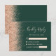 Der links Rand dieser eleganten, modernen Hochzeitskarte mit RSVP-Gehäuse verfügt über einen Glitzer-Rahmen für PfirsichImitate. Der individuell anpassbare Text kombiniert blasspfirsichfarbene Handschriften mit Copperplate-Schriftart auf smaragdgrünem Hintergrund. Auf der Rückseite ist ein smaragdgrünes und pfirsichgrünes Glitzer-Design zu sehen.