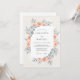 This design features a soft arrangement of peach roses paired with muted grey foliage for a timeless aesthetic. Delicate eucalyptus leaves and silver-toned stems create a sophisticated floral display. The watercolor textures provide a romantic and airy feel, showcasing a palette of warm apricot tones and cool charcoal.