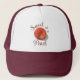 Zeigen Sie Ihre Liebe für den Sommer mit diesem Pfirsichhut. Dieses samtige, süße pfirsichfarbene Design zeichnet sich durch warme und helle Farbtöne aus wie Rose, Scharlach, Bernstein, Korallen und Lila. Personalisieren Sie den Text, indem Sie ihn ändern oder entfernen. Ich habe dieses Muster aus einem Bild in meinem Original-Acrylgemälde erstellt.
