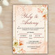 Invitación con un diseño flores en acuarela en color durazno claro con toques naranja, elegante ideal para una boda, con estilo moderno